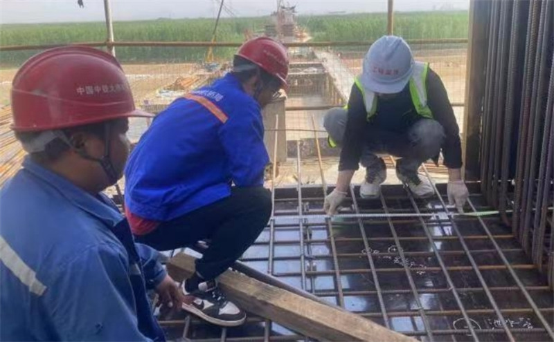 濱州樂安黃河公路大橋及接線工程主橋19#墩 0#塊鋼筋綁扎現(xiàn)場,監(jiān)理人員正巡視檢查預應力管道錨墊板位置、鋼筋綁扎位置。監(jiān)理人員積極響應“大干300天,奉獻在樂安” 勞動競賽暨黨建共建活動號召,秉持“嚴格監(jiān)理、優(yōu)質服務,科學公正、廉潔自律”工作理念,堅守安全、質量、廉政底線,不斷提升精細化管理水平,為項目建設保駕護航。